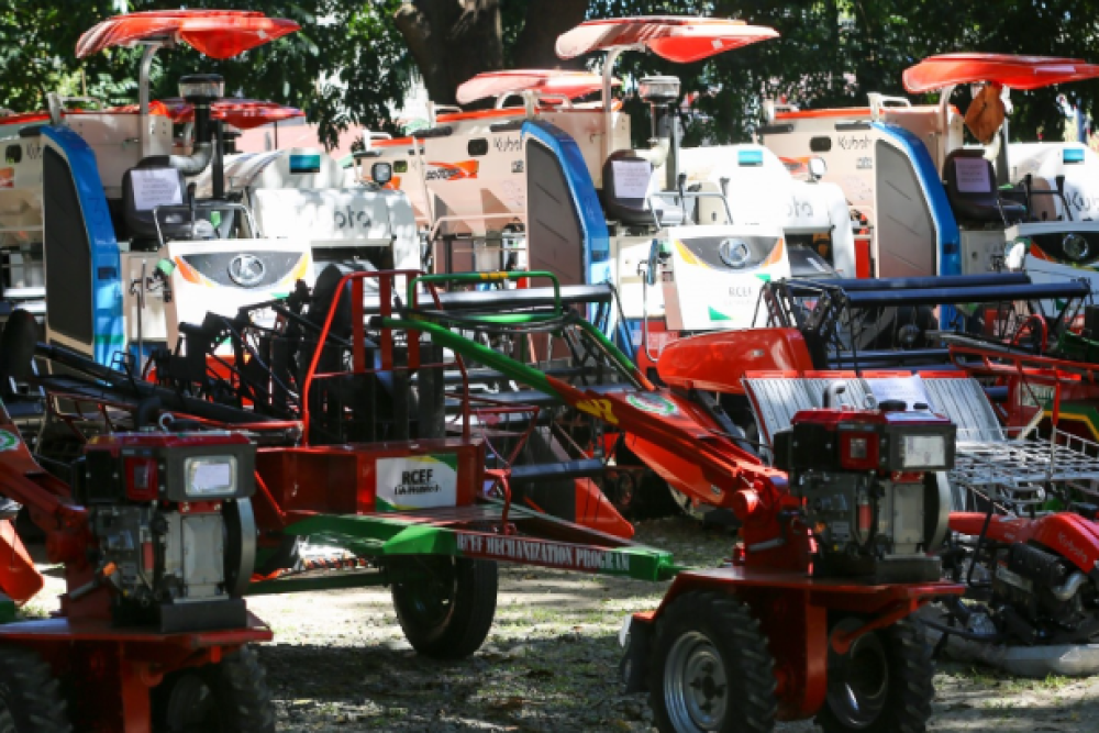 In partnership with the Philippine Center for Postharvest and Mechanization, participating farmer cooperatives received six units of hand tractors, 10 units of combine harvester, two units of multi-pass rice mill, and one unit walk behind a transplanter.